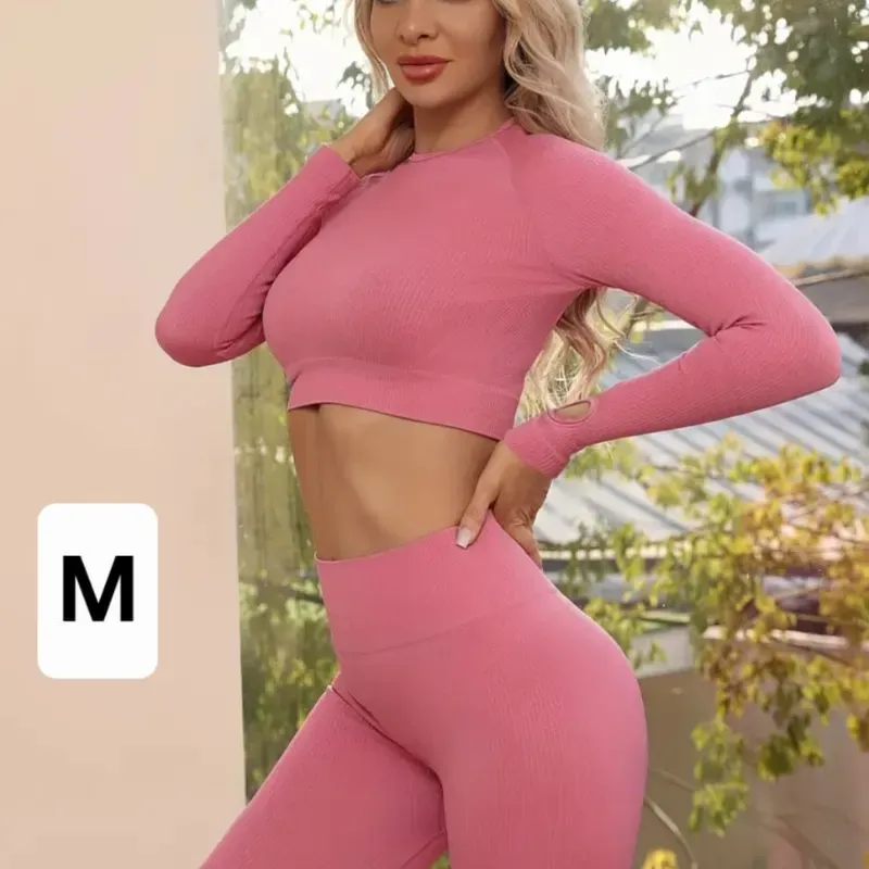 Conjunto blusa corta mangas largas y licra.