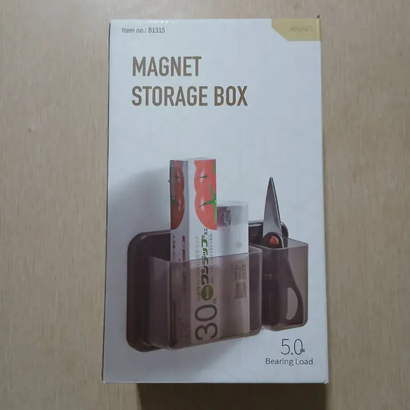 Gracias a su potente sistema de imanes, se fija de forma firme y segura sin necesidad perforaciones ni adhesivos. Ideal para guardar bolsas, especias, tijeras, notas o pequeños utensilios, manteniendo tu cocina ordenada y práctica.