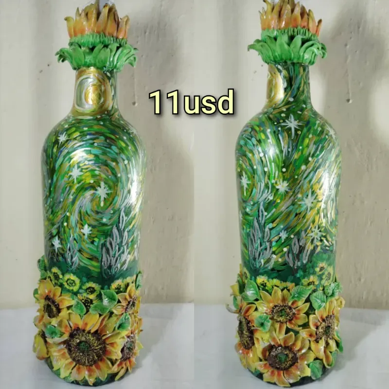 Lámpara artesanal con girasoles estilo Van Gogh