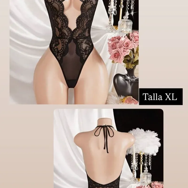 Lencería semitransparente de encaje, espalda afuera.