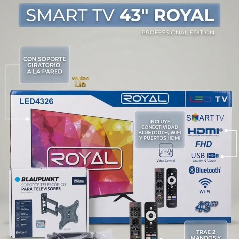Smart Tv 43" Royal con base giratorio de pared.