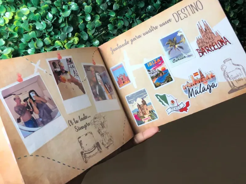 El libro está hecho de cartulina, todas las fotos y pegatinas que contiene están sacadas con papel fotográfico o papel pegatina.