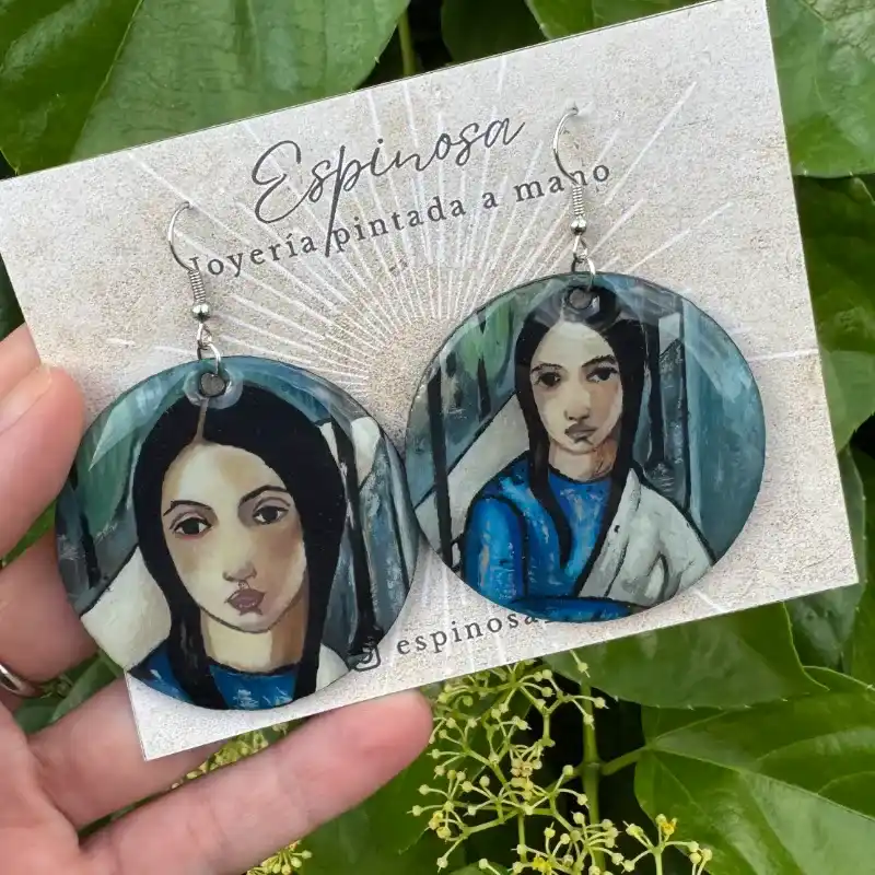 Pintado a mano sobre base de madera y cubiertos con resina, diámetro 5 cm.
