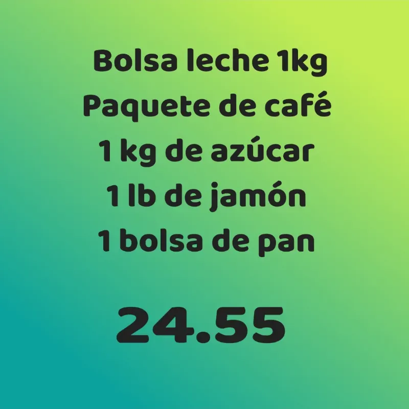 Bolsa leche 1kg Paquete de café 1 kg de azúcar 1 lb de jamón 1 bolsa de pan