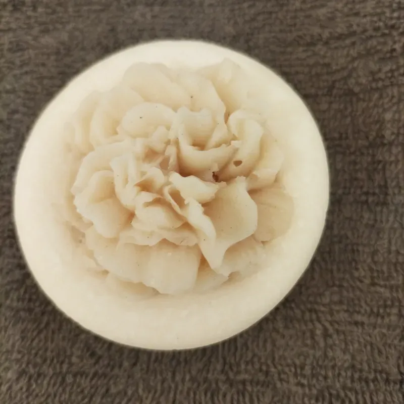 Jabón cremoso artesanal elaborado con sebo de res purificado y oleadado con cáscaras de naranjas deshidratadas, aceite de coco y aceite de ricino, enriquecido con arroz y seda para una experiencia de limpieza suave y nutritiva.