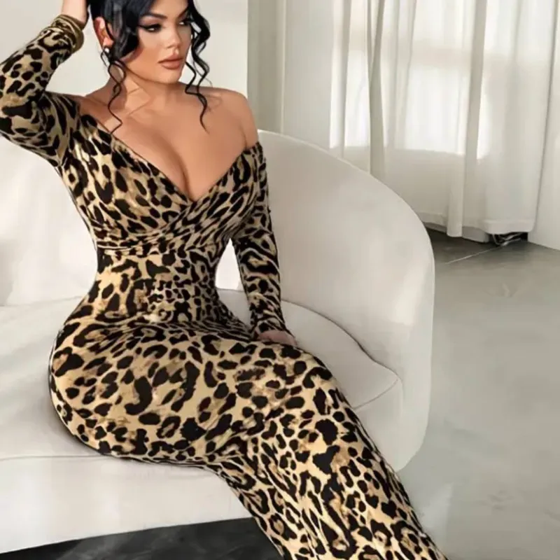 Vestido manga larga animal print