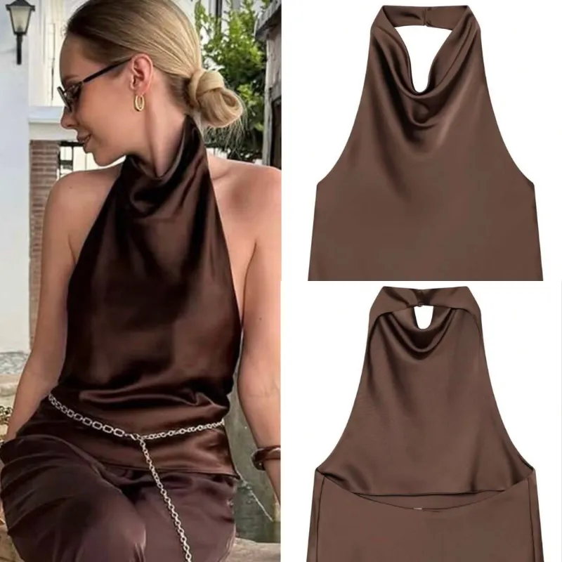 Blusa satinada cuello alto