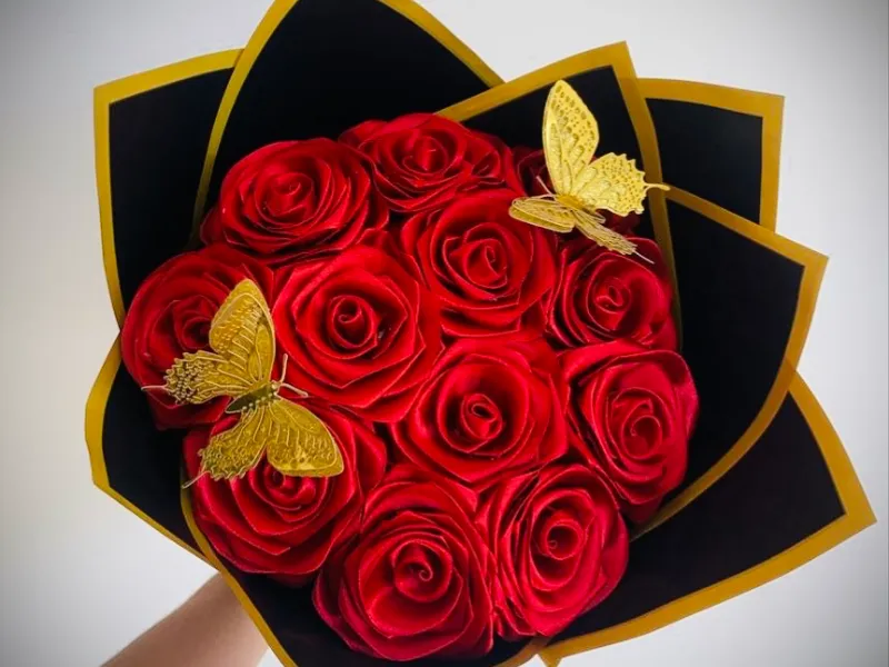 Ramo de rosas, eternas, hechas de satín de la mejor calidad.