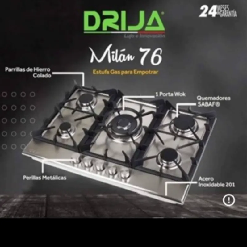 Cocinas Plateadas Empotrables de gas 5 hornillas