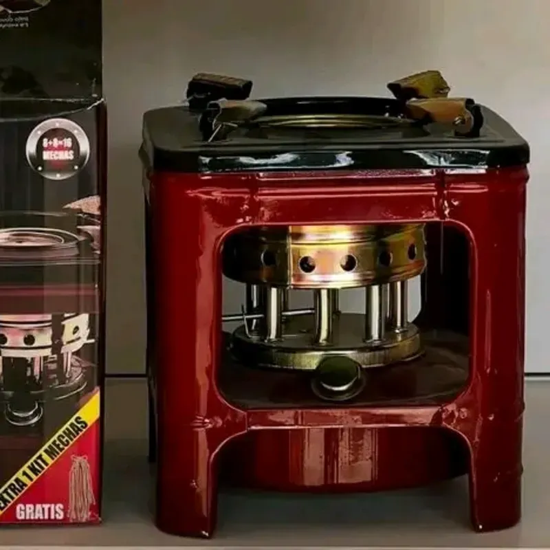 El Q7 Kerosene Stove está diseñado para ofrecer una experiencia de cocción práctica y segura. Su estructura metálica con acabado en rojo y quemador de latón garantiza durabilidad y rendimiento constante.