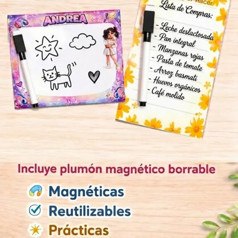 👉 Incluyen un plumón magnético que se borra en seco, siempre listo para escribir y volver a empezar.