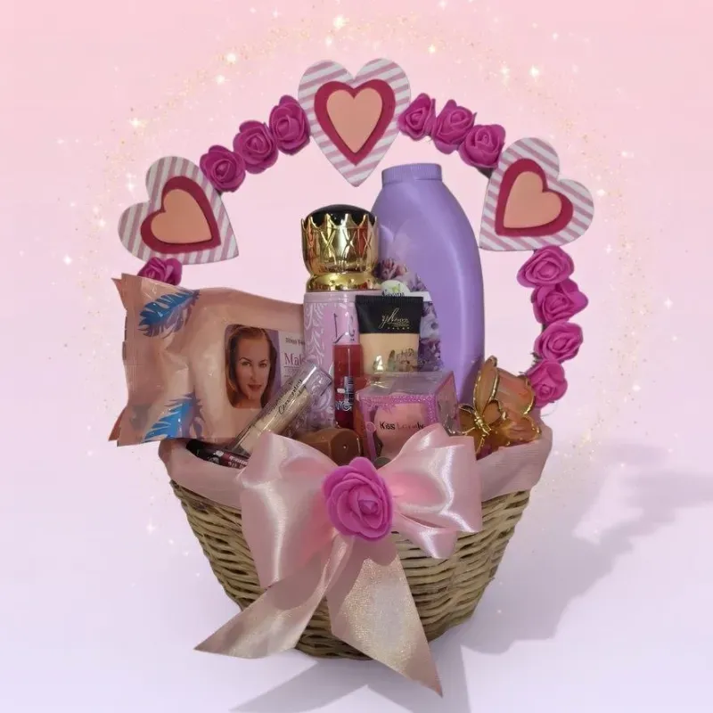 Contenido: Talco,Colonia,Toallitas Humedas,6 productos de belleza (Base Liquida, Creyón, Brillo Labial,Delineador, Corrector,Esponja,Pellisco)