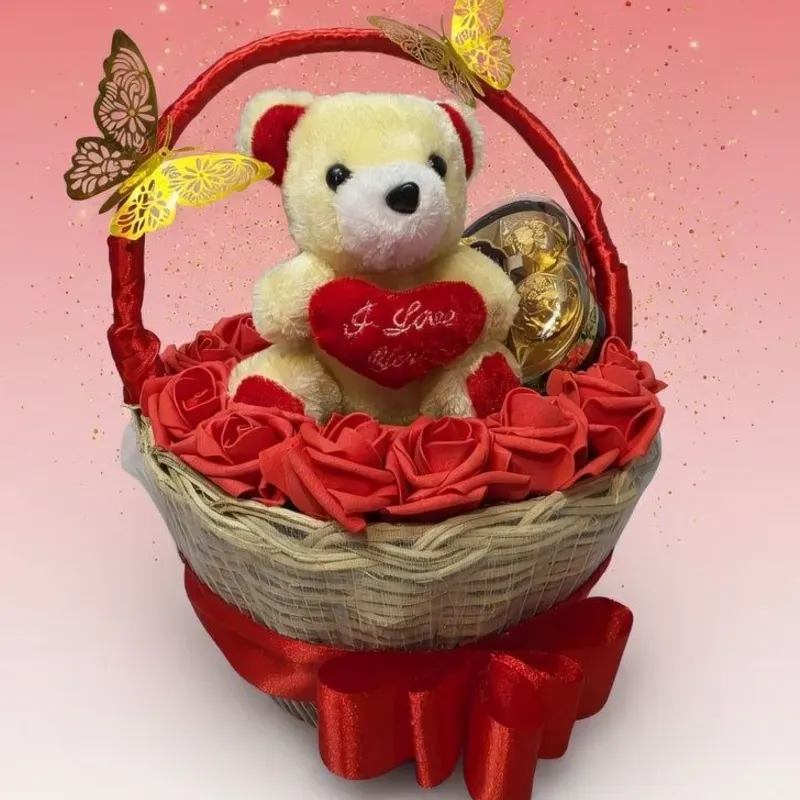Contenido: 30 Rosas,Peluche,Caja de Bomb