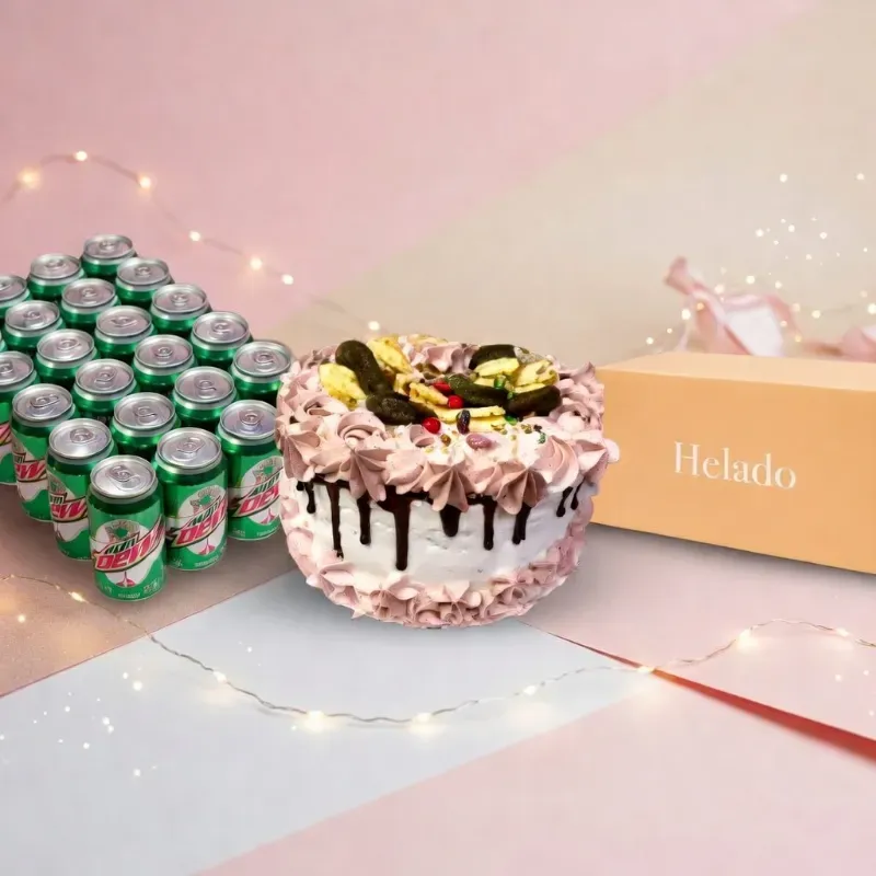 Contenido: Caja de Cerveza Cristal, Cake mediano , Caja de Helado 4L