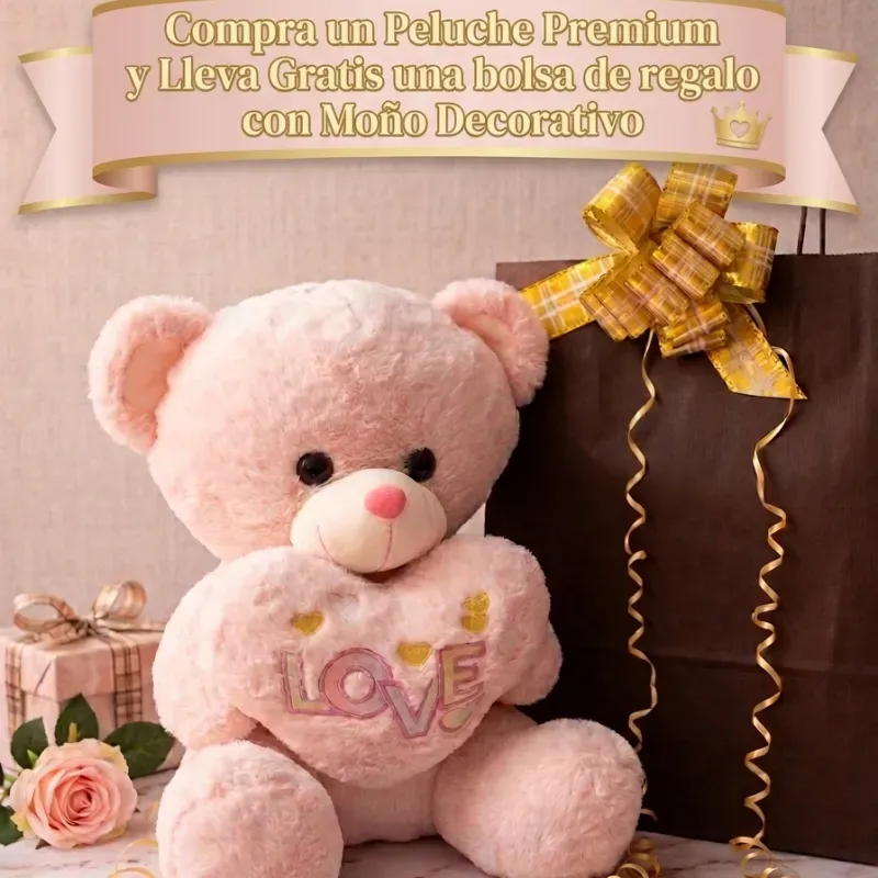 Compra un Peluche Premium y Lleva Gratis una Bolsa de Regalo con Moño Decorativo