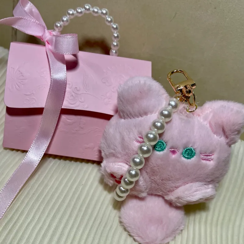 Llavero de peluche con correa de perlas