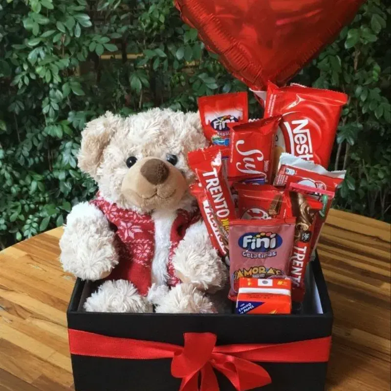 Peluche tamaño mediano según disponibilidad Confituras Globo temático Cesta mediana Imagen referencia de la web
