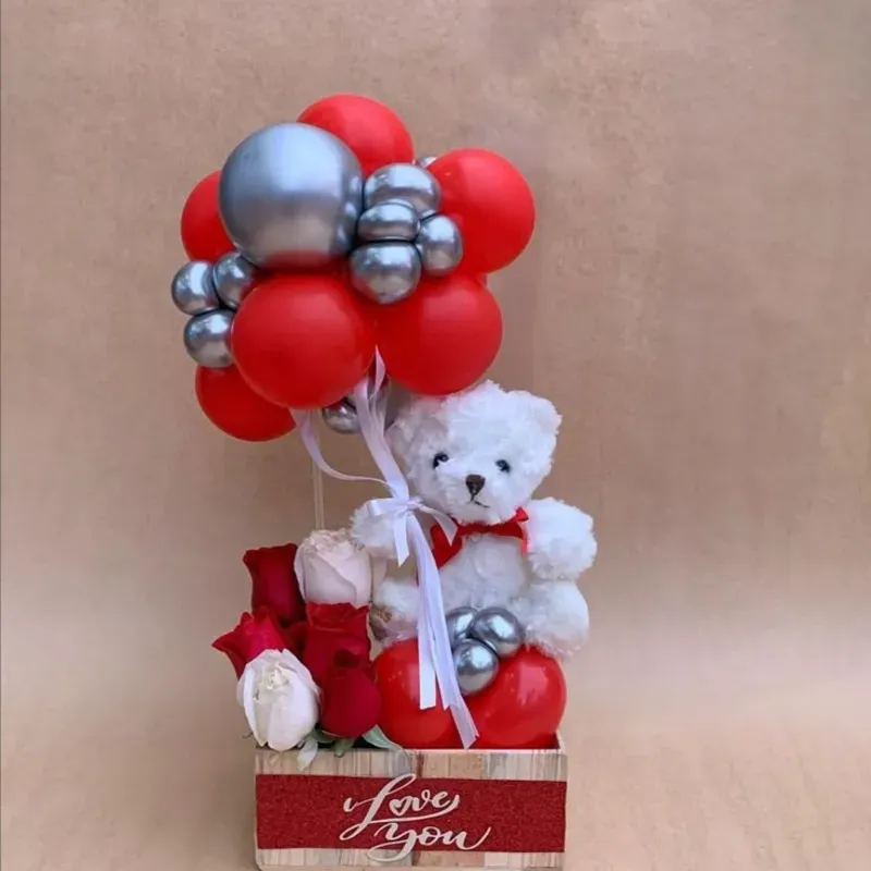 6 Rosas eternas , peluche según disponibilidad Tamaño mediano ,globos