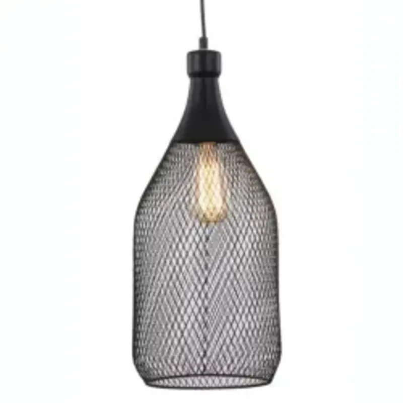 Luminaria de malla botella grande Luminaria de techo en metal negro, socket E27, dimensiones 20x20x42cm