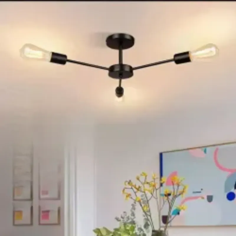 Luminaria SPUTNIK 3 brazos planos Luminaria de techo tipo Sputnik de 3 brazos, color negro, socket E27, bombillos no incluidos