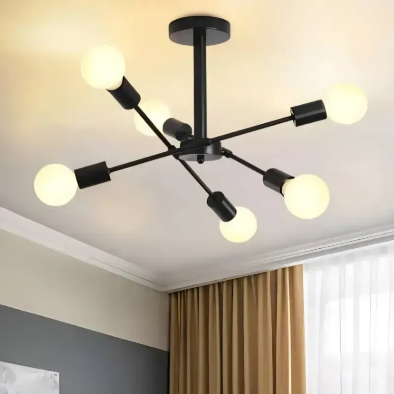 Luminaria Sputnik 6 brazos en barra Luminaria de techo tipo Sputnik con 6 brazos en barra ajustables, socket E27, no incluye bombillo