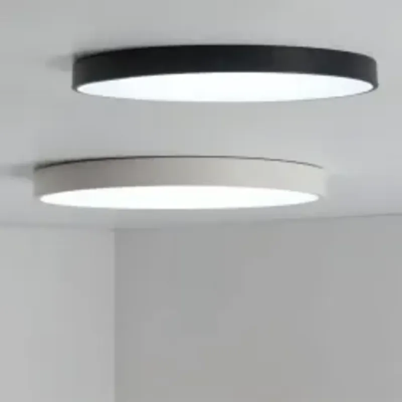 Plaf贸n minimalista Plaf贸n circular de dise帽o minimalista con cuerpo de metal en negro/blanco de 50cm de di谩metro, iluminaci贸n led tricolor, mando a distancia para regular color e intensidad de la luz