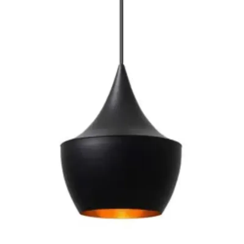 Luminaria colgante Beat Fat en metal negro y dorada. Forma parte de la serie Beat del diseñador Tom Dixon