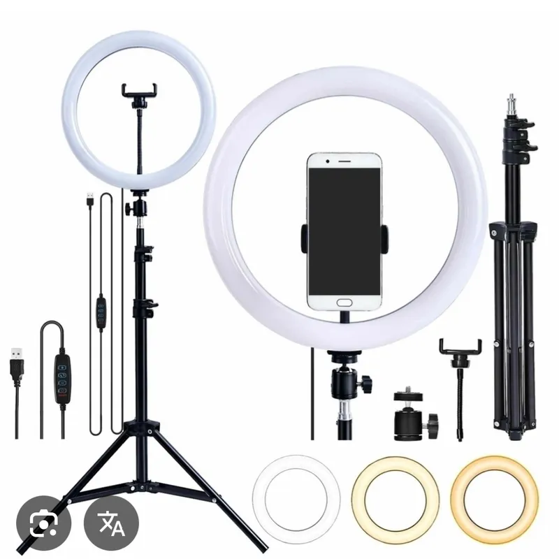 Aro de luz de 18” igual a 45cm con trípode y tres luces,control remoto y carga celular