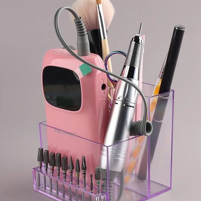 Porta máquinas (drill) de acrílico transparente,también incluye la organización de 10 fresas(brocas)