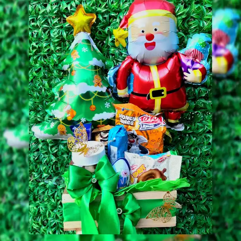 Incluye Decoracion temática de navidad✅️ globos de navidad✅️ nutella✅️ huevo sorpresa ✅️ confituras varias grandes✅️ acesorios para decoracion ✅️