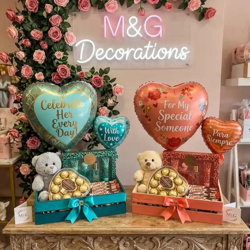 Ademas de esto la caja con toda su decoracion con globos y demas detalles.