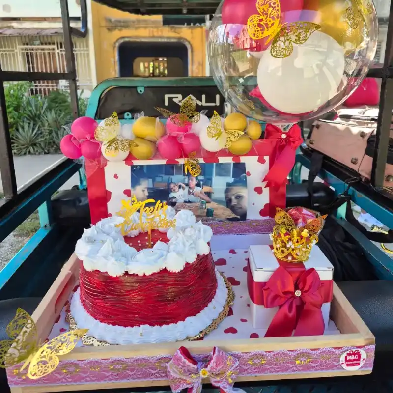 Bandeja sorpresa decorada con el color, tematica y decoración personalizada ✅️ Esta bandeja incluye : 1 manga de una rosa eterna✅️ 1 caja rellena de una taza personalizada ✅️ 1 combo de 10 confituras✅️ 1 foto✅️ 1 panetela✅️ Globo burbuja + globitos✅️ Logo y tarjeta del negocio✅️