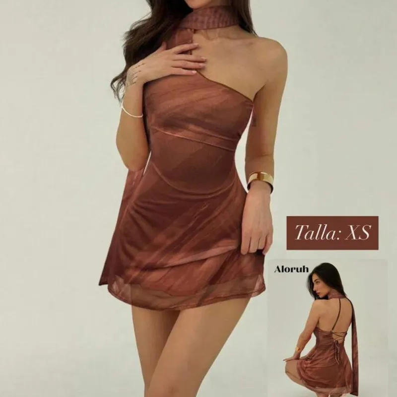 Vestido carmelita con tiras al cuello