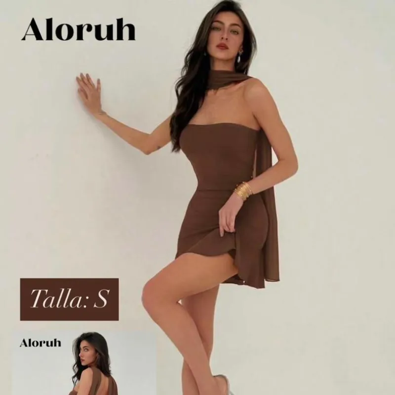 Vestido carmelita con tiras en el cuello