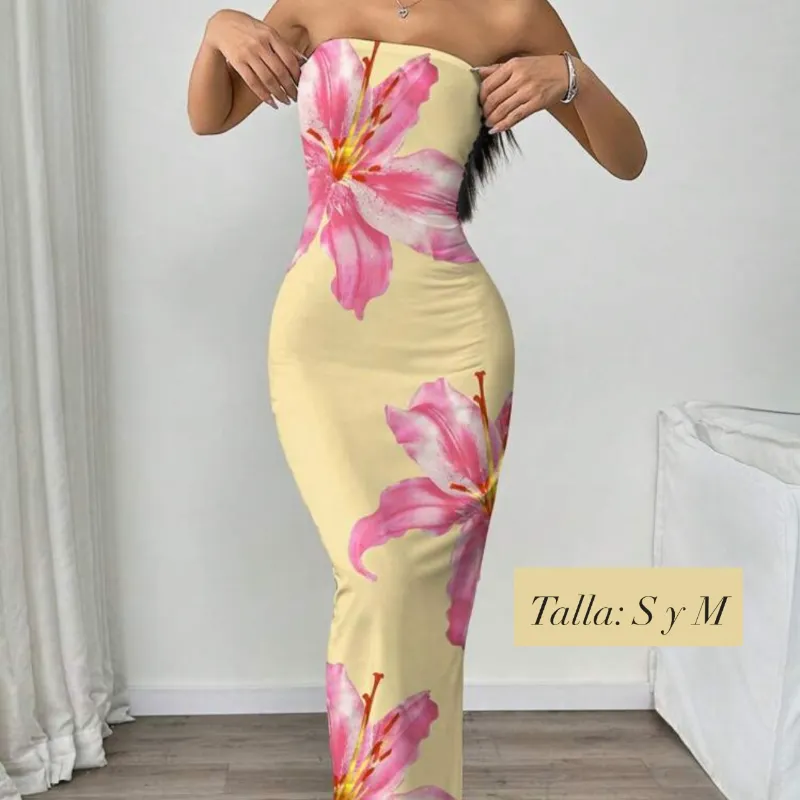 Vestido de playa amarillo con flores