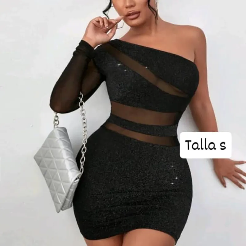 Vestido negro con brillos y partes transparentes