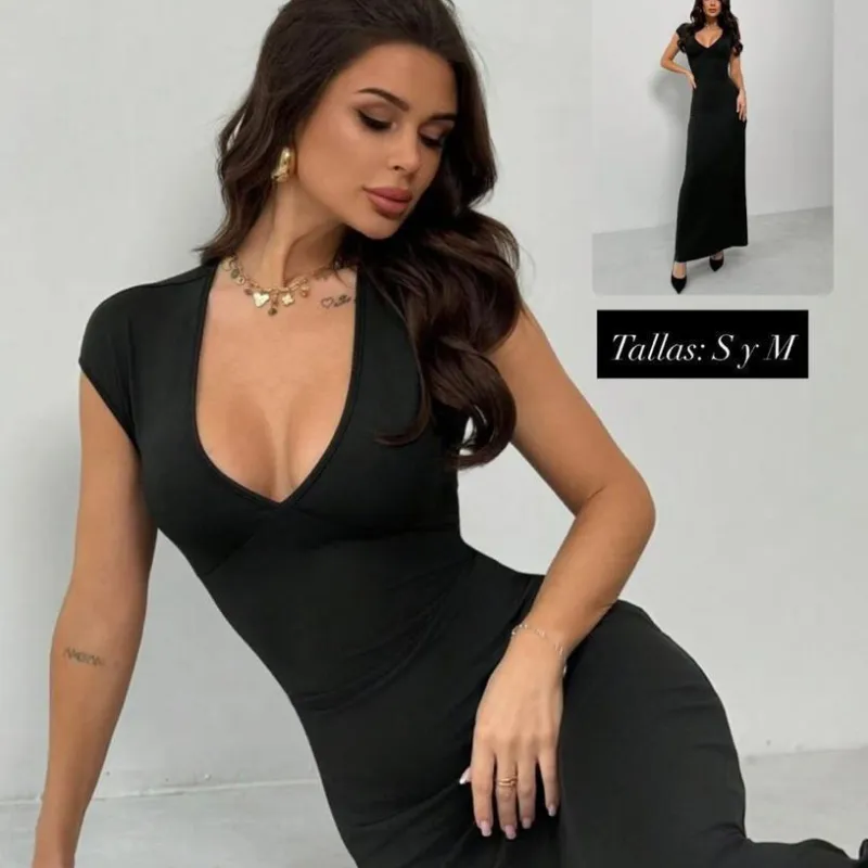 Vestido negro de mangas corta y escote