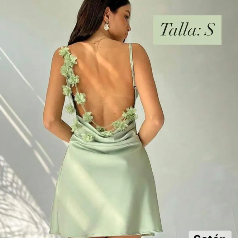 Vestido verde de Satén con flores