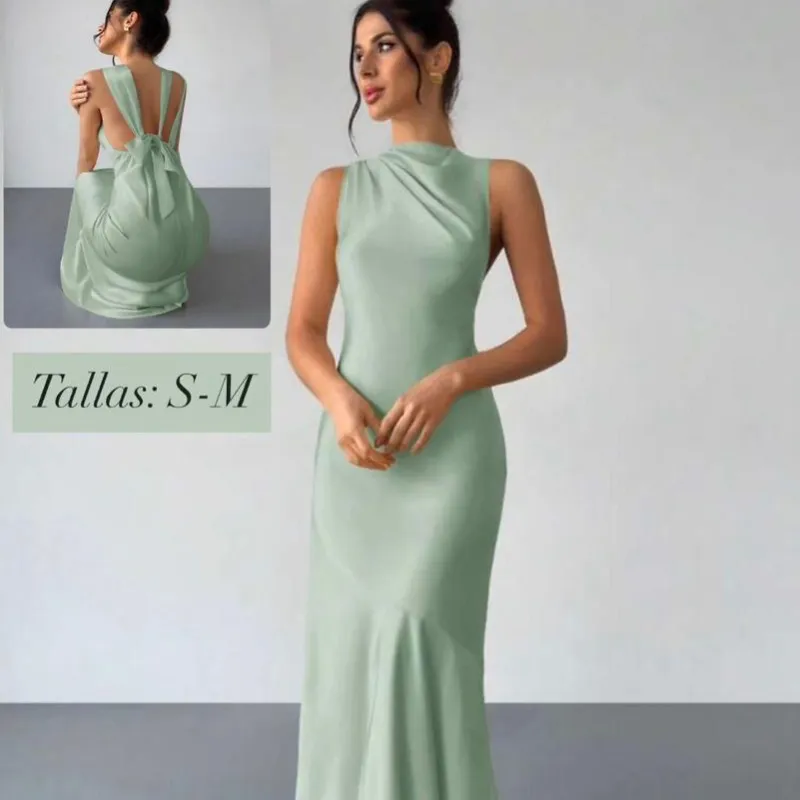 Vestido verde de satén con lazo