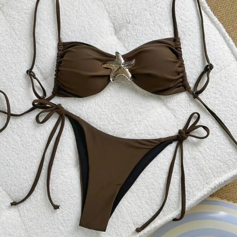 Bikini carmelita con estrella en la parte de arriba
