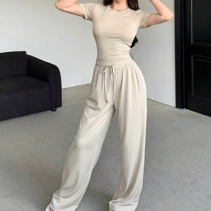 Conjunto beige de pullover y pantalón ancho