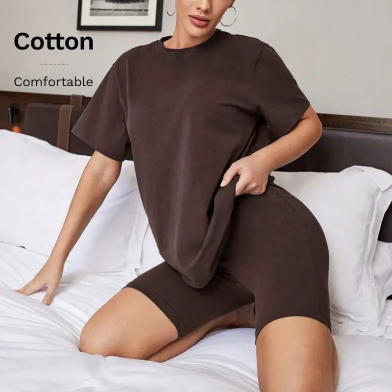 Conjunto de pullover ancho y lycra corta carmelita