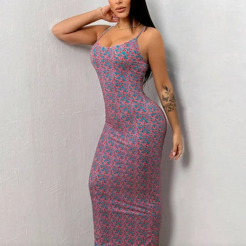 Vestido largo ,azul floreado