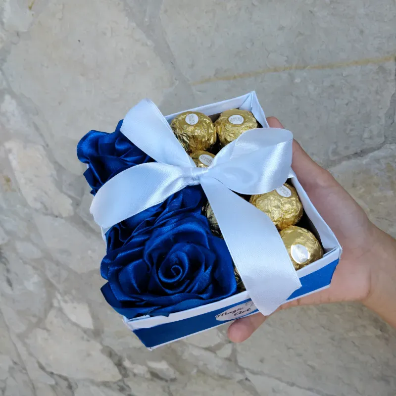 Caja con 8 bombones ferrero rocher (disponible con otros bombones y en otro precio) Y rosas eternas