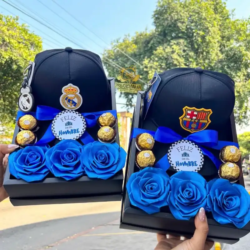 Caja cuadrada gorra , rosas 🌹, 4 bombones 🍫 Ferrero Rocher 8750