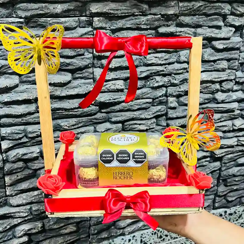 Caja de madera con bombones Ferrero Rocher