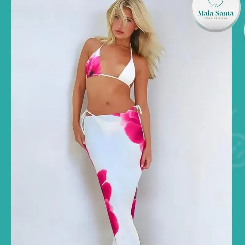 Juego de tres piezas blanco floreado