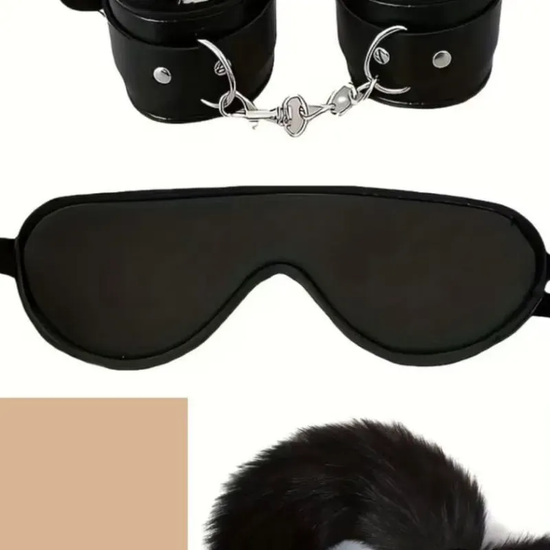 Incluye plug anal con cola, antifaz y un par de esposas