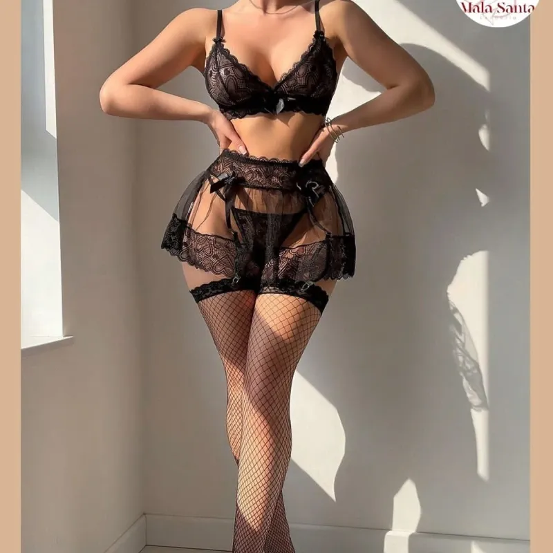 Set negro con medias y arnes estilo faldita