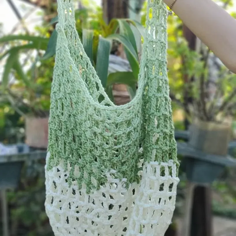 Ligera, fresca y llena de naturaleza. Esta bolsa de red tejida a mano en tonos menta y blanco es perfecta para el mercado, la playa o el día a día. Su tejido calado y abierto la hace única, práctica y con un estilo natural irresistible. 🌿